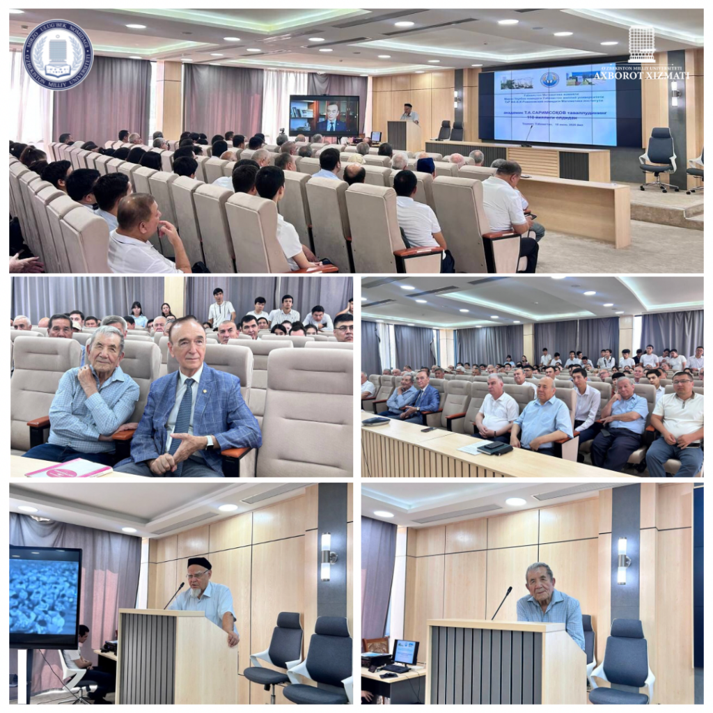 Shu munosabat bilan bugun Mirzo Ulug’bek nomidagi O‘zbekiston Milliy universiteti Matematika fakulteti, O‘zbekiston matematika jamiyati hamda O‘zR FA V.I.Romanovskiy nomidagi Matematika instituti bilan hamkorlikda yosh matematiklar,talabalar, magistrant va doktorantlar uchun akademik T.A.Sarim-soqov tavalludining 110 yilligi oldidan “Т.А.Sarimsoqovning O‘zbekistonda matematikaning rivojida tutgan o‘rni va ilmiy merosi haqida” mavzusida ilmiy-ma’rifiy tadbir bo‘lib o‘tdi.