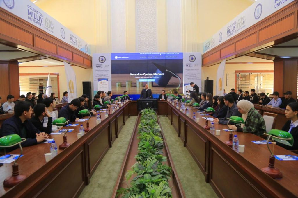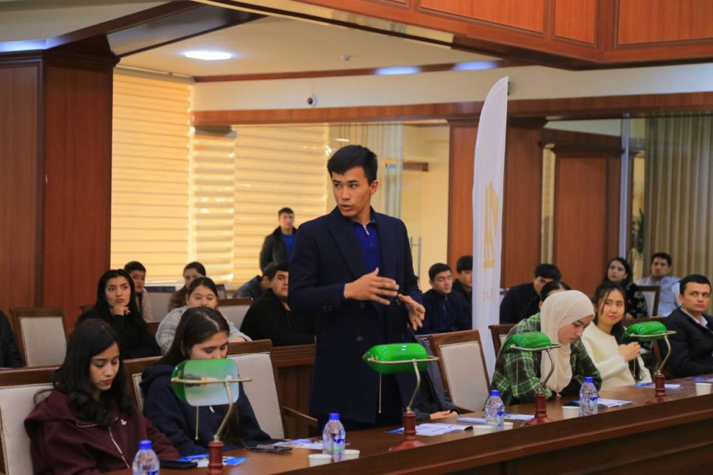 Tadbir davomida “O‘zmilliybank” AJ huzuridagi “Kelajakka qadam” markazi direktori o‘rinbosari Behruz Ostonov va markazning bosh mutaxassisi Azimjon Ilhomov talabalar bilan ochiq muloqot olib borishdi. Ular yosh mutaxassislar uchun yaratilgan imkoniyatlar, shuningdek, “Kelajakka qadam” dasturi orqali startap loyihalarni moliyalashtirish mexanizmlari haqida batafsil ma’lumot berishdi.