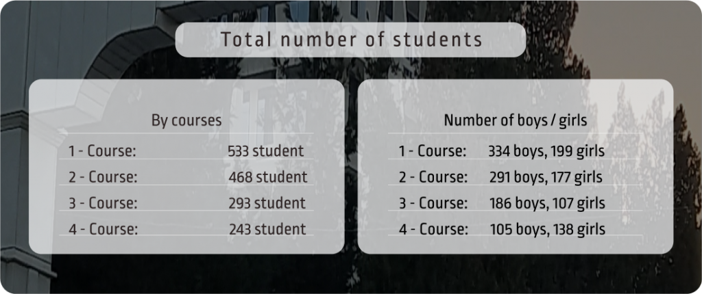 The faculty has all the necessary conditions for conducting classes using modern information multi-media technologies. Classrooms are equipped with multimedia and computer equipment. There are necessary training and teaching materials for the classes. The library Fund consists of 125,000 books and scientific magazines. There is a reading room and resource center with provides access to international databases of scientific periodicals such as Scopus and Web of Science.
