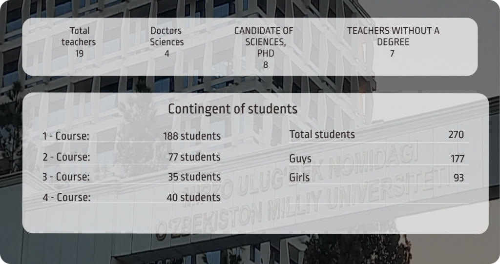 Raxmonov Komiljon Radjabovich – Dean of the faculty 100174 Tashkent city, Almazor district, University street 4