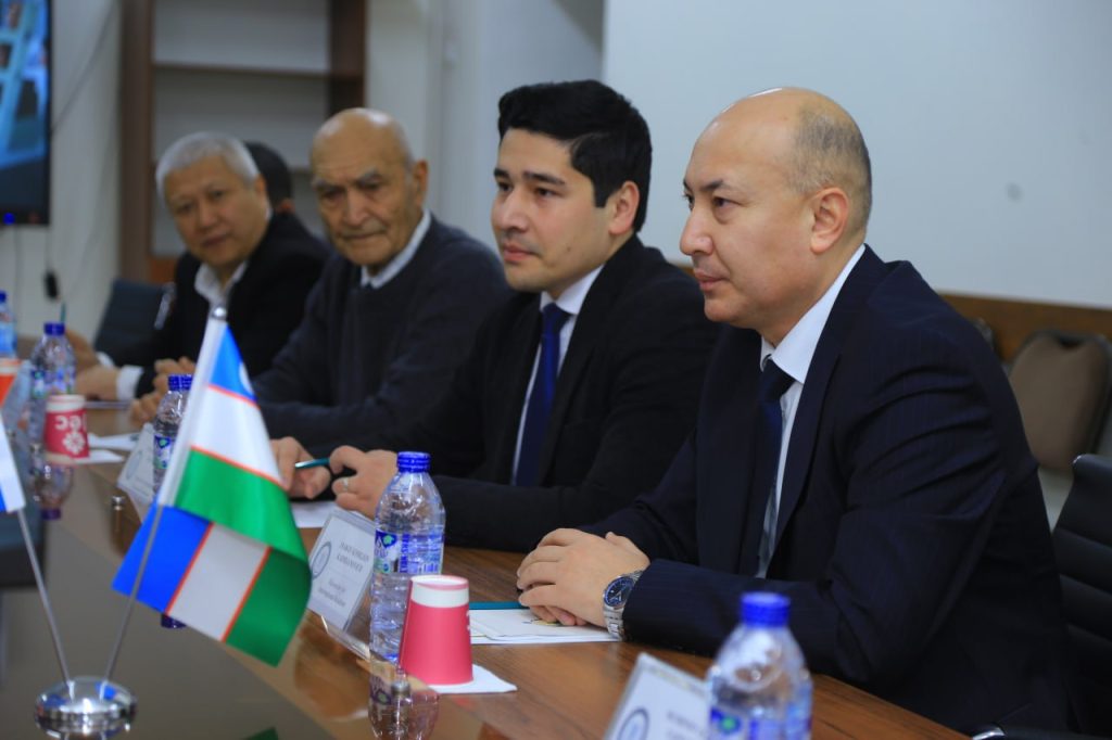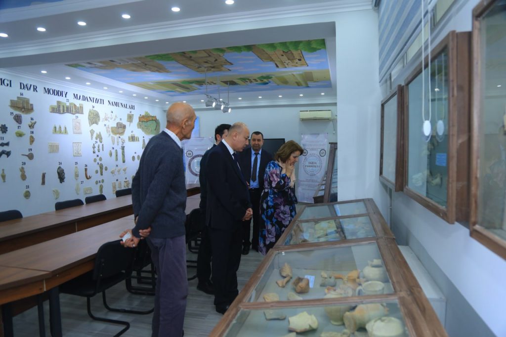 At the meeting organized at the Faculty of History of the university, the Ambassador was welcomed by Vice-Rector for International Relations K. Inakov, Head of the International Relations Department J. Madatov, Academician A. Sagdullayev, and Head of the Department of Archaeology F. Ochildiyev.