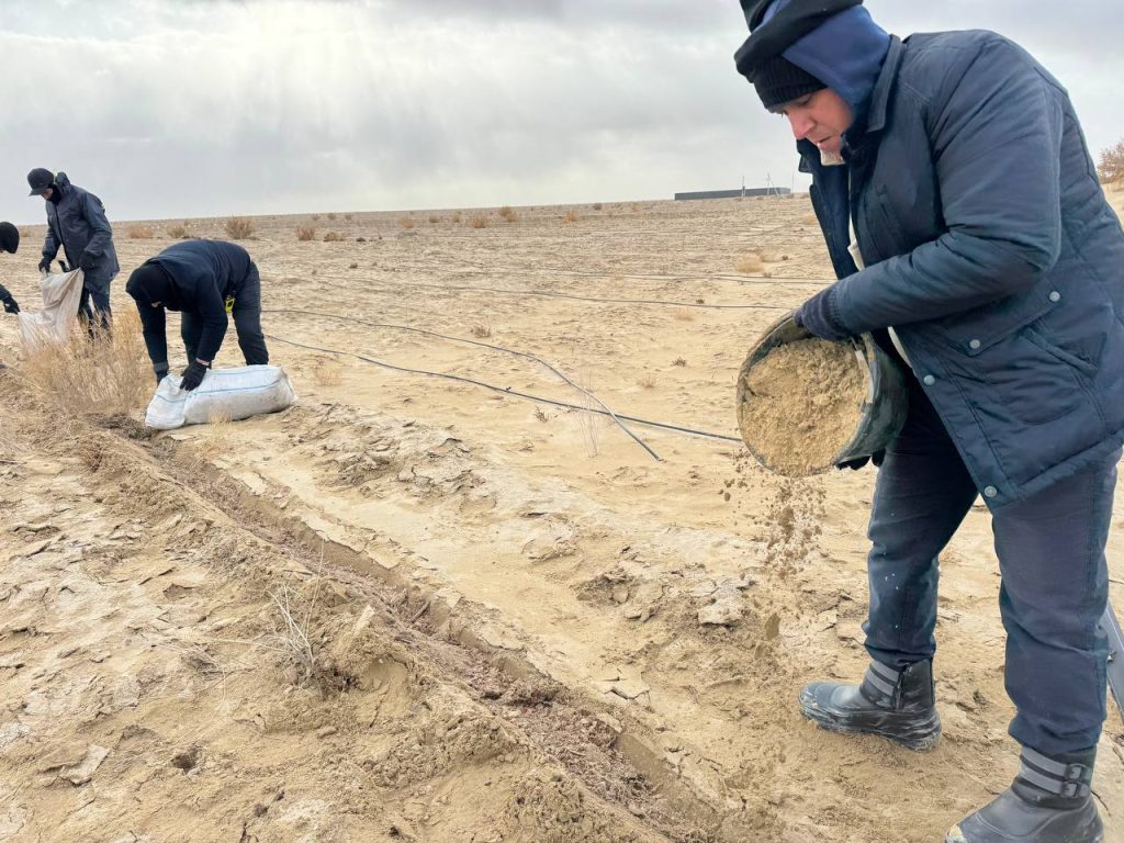The team of the Faculty of Biology and Ecology of the National University of Uzbekistan carried out another scientific and practical expedition to create a green space on the dried-up bottom of the Aral Sea. Winter crops and various plant seeds were planted in these areas.