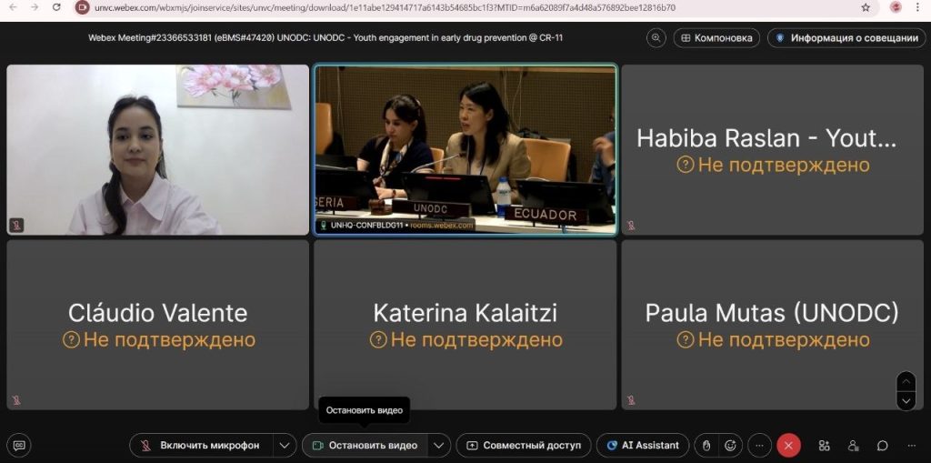 At this prestigious forum, Charos Abdugafurova, a master’s student of the Faculty of Social Sciences at the National University of Uzbekistan in the field of Social Work and an active member of the UNODC Youth Network, delivered a presentation. Her report was dedicated to the topic “Central Asia Youth Network — UNODC: Cooperation and Prevention Practices.” In her speech, she highlighted in detail the ongoing work in Central Asian countries related to youth engagement, development of prevention systems, and strengthening social initiatives, presenting this experience to the international community.