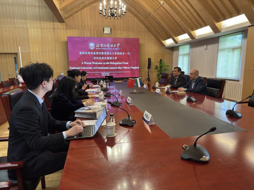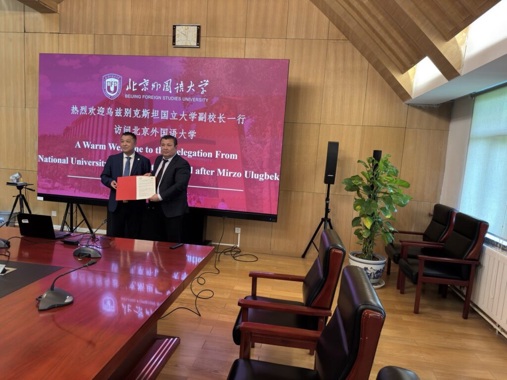 At the meeting held at Beijing Foreign Studies University, the future areas of cooperation between the National University of Uzbekistan and this institution, their prospects, as well as current issues such as the establishment of a Chinese language center at the National University of Uzbekistan and an Uzbek language center at Beijing Foreign Studies University were discussed, and a memorandum of cooperation was signed following the meeting.