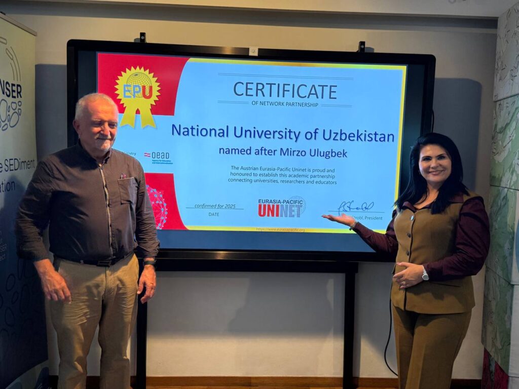 🔴 Within the framework of cooperation, agreements were successfully reached on sending students, master’s, and PhD students for scientific internships through the implementation of Erasmus projects. In recognition of many years of collaboration, the University of Salzburg administration presented Raima Shirinova, Vice-Rector for International Relations at NUUz, with a certificate of membership in the Austrian Academic Network. This certificate will enable university professors and lecturers to carry out scientific research projects via a platform that ensures multilateral cooperation.