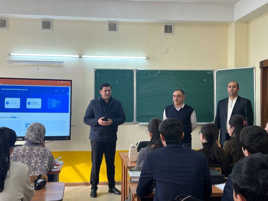 Ijtimoiy fanlar fakulteti yoshlar masalalari bo‘yicha dekan o‘rinbosari Bahodir Ergashev, Siyosatshunoslik kafedrasi mudiri, siyosiy fanlar doktori Xayrulla Umarov tomonidan Davlat dasturi loyihalariga taklif kiritish tartibi bo’yicha talabalarga tushunchalar berildi.
