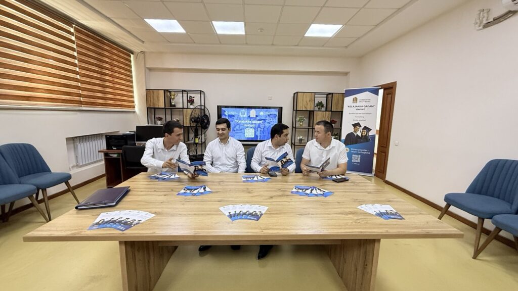 Ochiq muloqot davomida ishchi guruh tomonidan “Kelajakka qadam” dasturi doirasida qilinishi lozim bo‘lgan asosiy vazifalar hamda kelgusidagi faoliyat yo‘nalishlari haqida batafsil ma’lumot berildi. Mavjud masalalar va ularni ijobiy hal qilish bo‘yicha fikr almashildi.