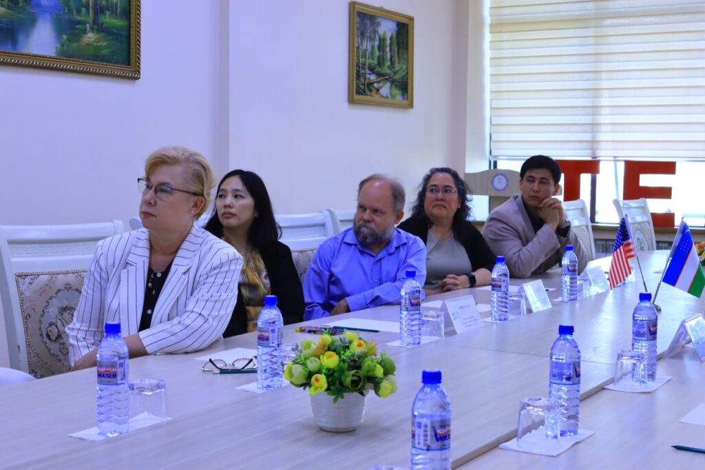 🔴Uchrashuv avvalida O‘zMU haqida videorolik namoyish etilib, universitetning ta’lim va ilmiy yo‘nalishlari bilan tanishtirildi. Suhbat davomida Michigan universiteti vakili Kevin Makkiy O‘zMU geologiya mutaxassislari bilan hamkorlikda amalga oshirilayotgan ilmiy tadqiqotlar haqida to‘xtalib o‘tdi. Xususan, O‘zMU professor va talabalari amaliy mashg‘ulotlar o‘tkazadigan “Oqsоq-ota” o‘quv-dala amaliyot poligonida olib borilayotgan qo‘shma ilmiy-amaliy ishlar haqida ma’lumotlar berdilar. Shu asosda mehmonlar O‘zMU bilan yangi ilmiy loyihalarni amalga oshirish va hamkorlikni yanada kengaytirish taklifini bildirdilar.