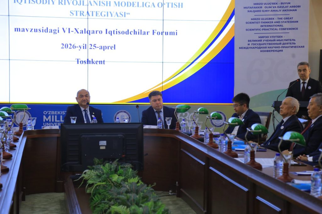 Bugun, 25-aprel Mirzo Ulug‘bek nomidagi O‘zbekiston Milliy universitetida Iqtisodiyot fakulteti tashkil etilganligining 35 yilligi munosabati bilan “Milliy iqtisodiyotning resurs tejamkor iqtisodiy rivojlanish modeliga o‘tish strategiyasi” mavzusidagi VI Xalqaro iqtisodchilar forumi o‘z ishini boshladi.