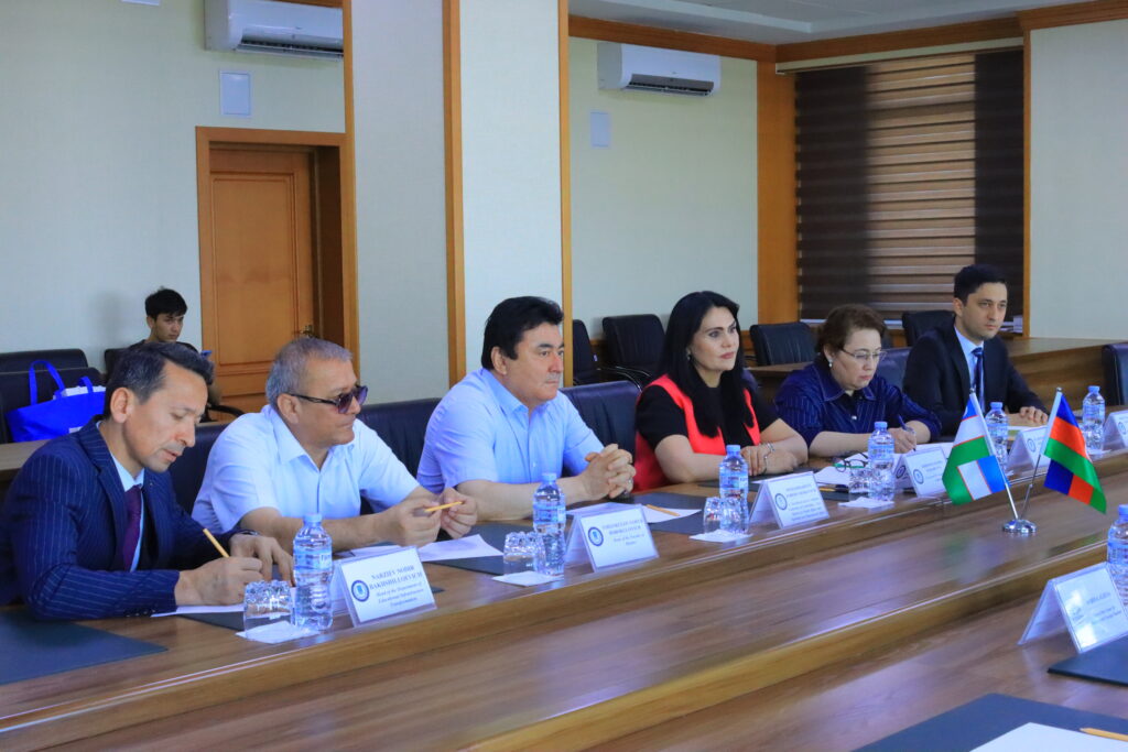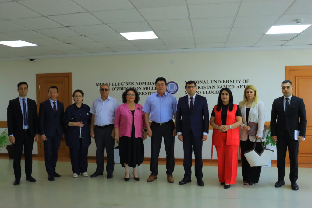 Сегодня, 31 мая, Национальный университет Узбекистана посетила делегация Азербайджанского государственного университета нефти и промышленности. В состав делегации вошли ректор университета Руфат Азизов, советник ректора Тахир Мамедли, руководитель Центра по работе с иностранными студентами Сабина Алиева, а также начальник отдела международных проектов и производственных связей Назрин Ширинова.