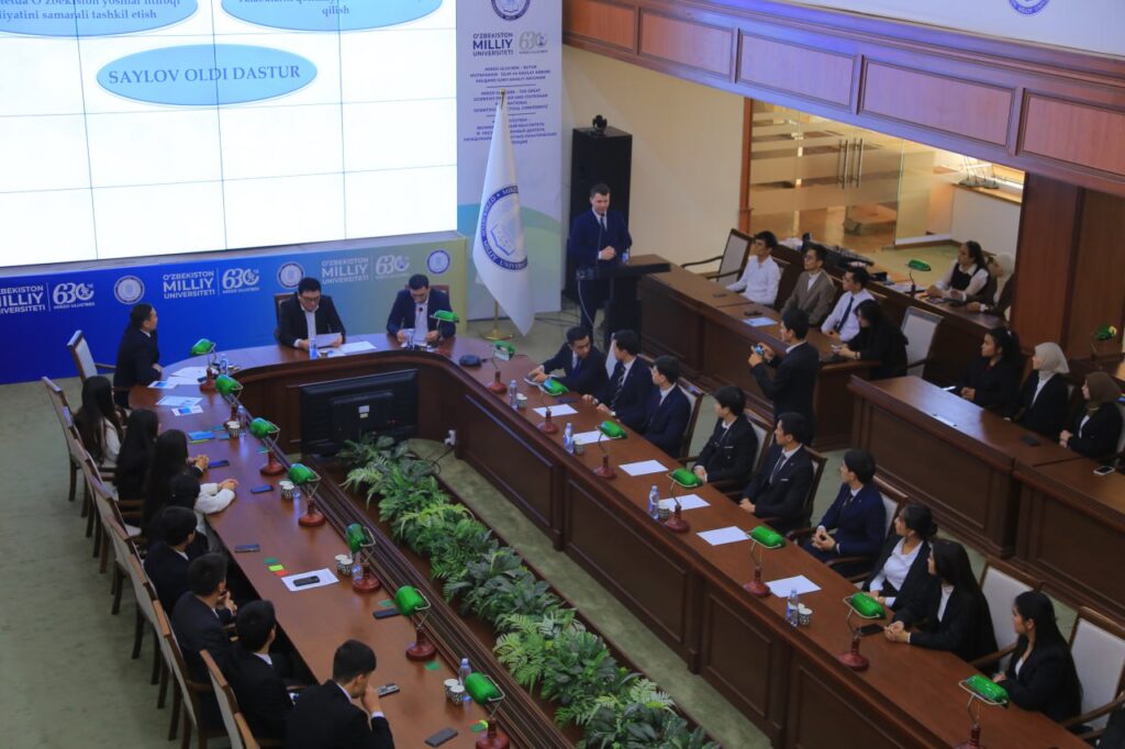 В нем приняли участие первый проректор университета Джаббор Мухаммадиев, председатель Ташкентского городского совета Союза молодежи Узбекистана Шукуруллохон Анваров, ответственные лица, занимающиеся вопросами молодежи, а также активная студенческая молодежь.