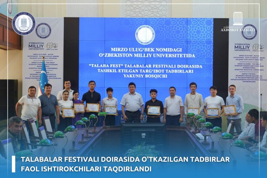 В конце фестиваля состоялось торжественное награждение около 100 студентов, отличившихся особой активностью и достижениями. Им были вручены дипломы, почетные грамоты и памятные сувениры.