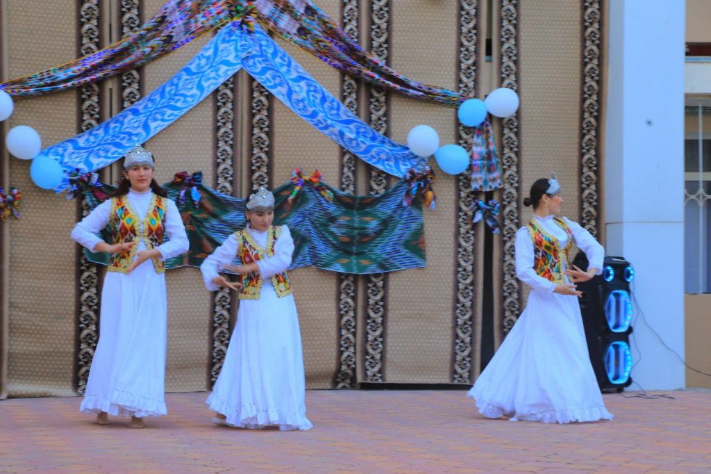 Bayram dasturida talaba-yoshlar kuy-qo‘shiqlar ijro etdi, milliy raqslar namoyish qilindi. Shuningdek, tadbirga mehmon sifatida tashrif buyurgan Jurnalistika va o‘zbek filologiyasi fakulteti talabalari Vatan, til va millat madhiyasi bo‘lgan she’rlarni jo‘shqinlik bilan o‘qib eshittirdi.